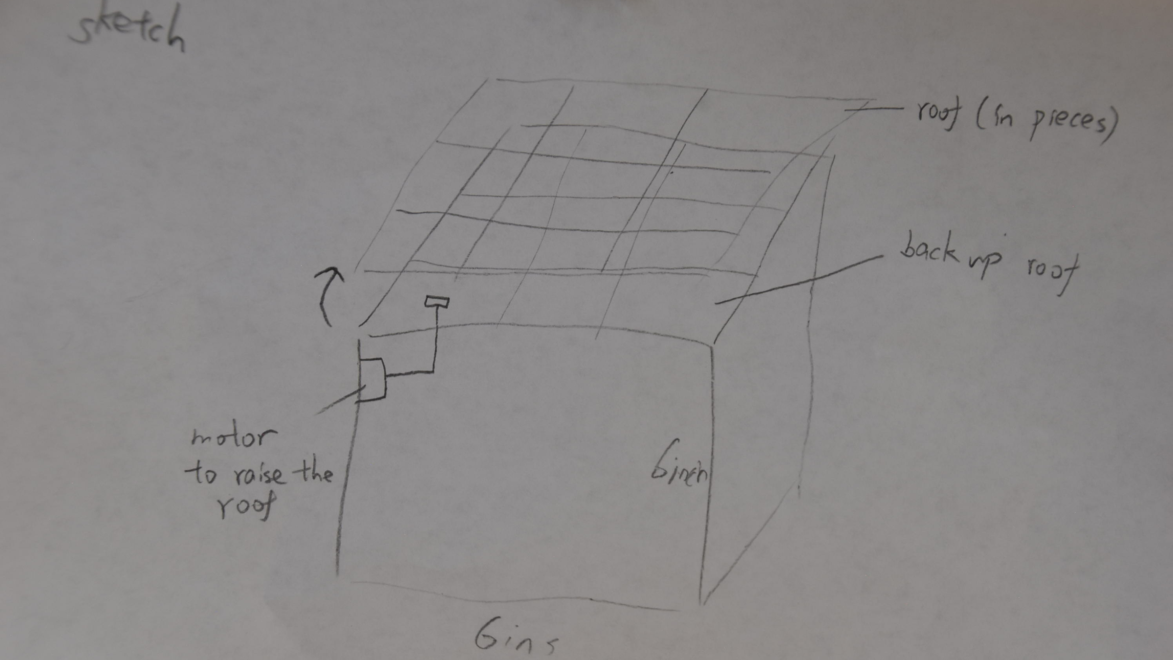 Today, we finalized our idea and decided how we are going to make our special roof. After receiving advice from Ms. M and combining both of the roof ideas we had before, we are going to make a self-repairable roof where one piece falls off; it will be a second piece automatically delivered to fill the hole.