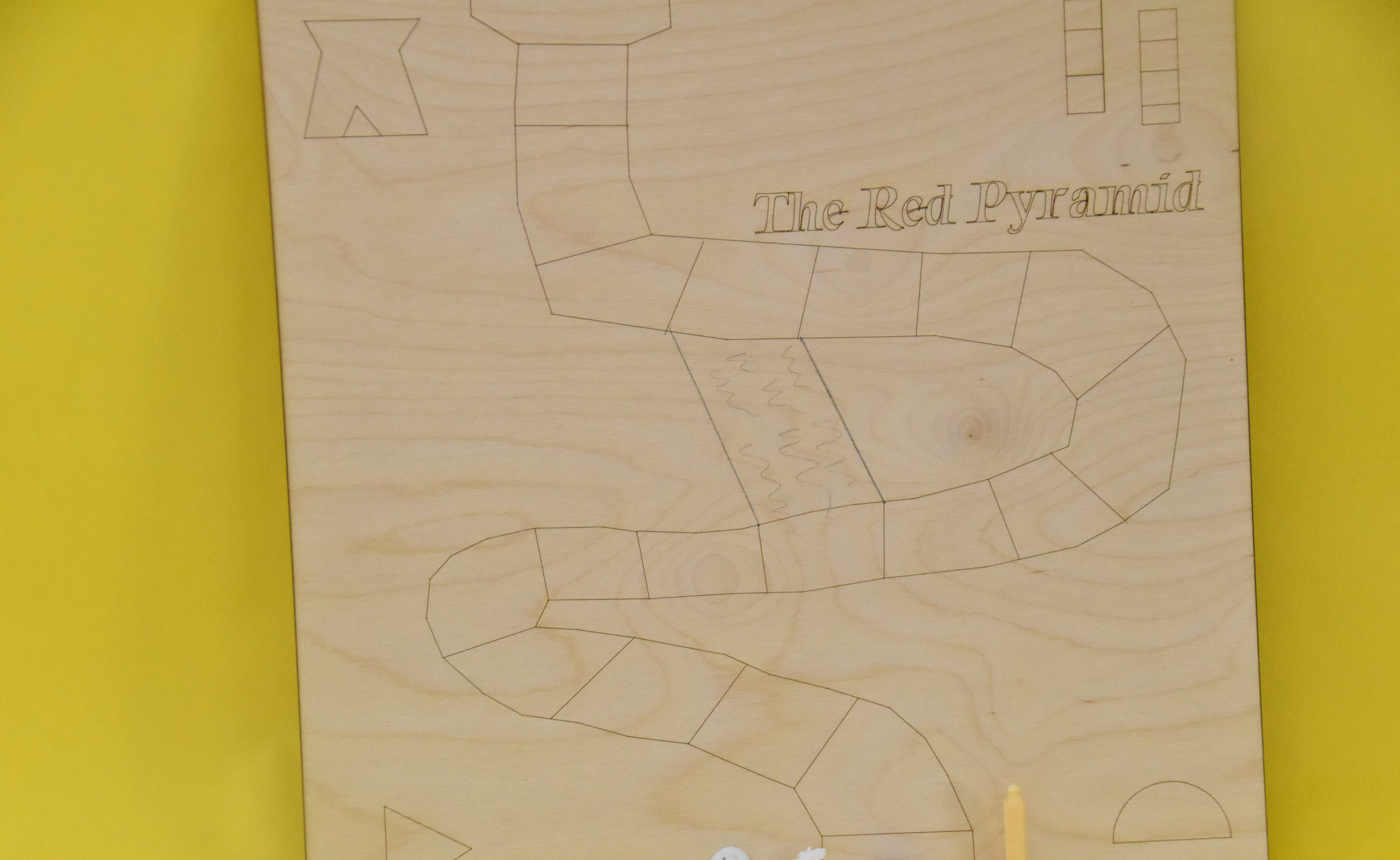 Today, I created a stand and a back that I will put the instructions on. I also started to add details to my board. I also started a 3d print for a pyramid that I will hot glue onto my board and designed my laser cut but I was not able to 3d print it because the laser cutter was backed up.