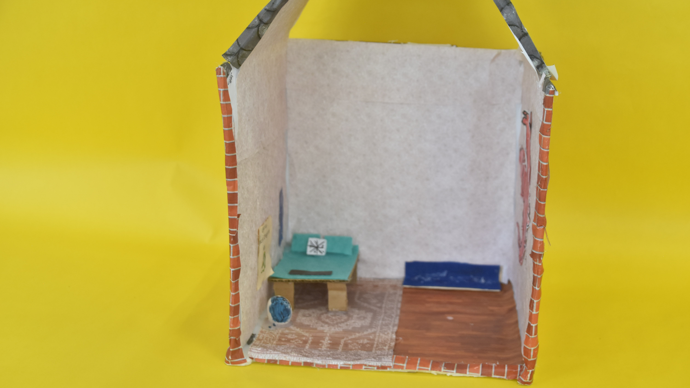 Today I worked on my diorama parts. I finished my frog and I put it on the diorama. I also finished putting my trees and house on to the diorama.