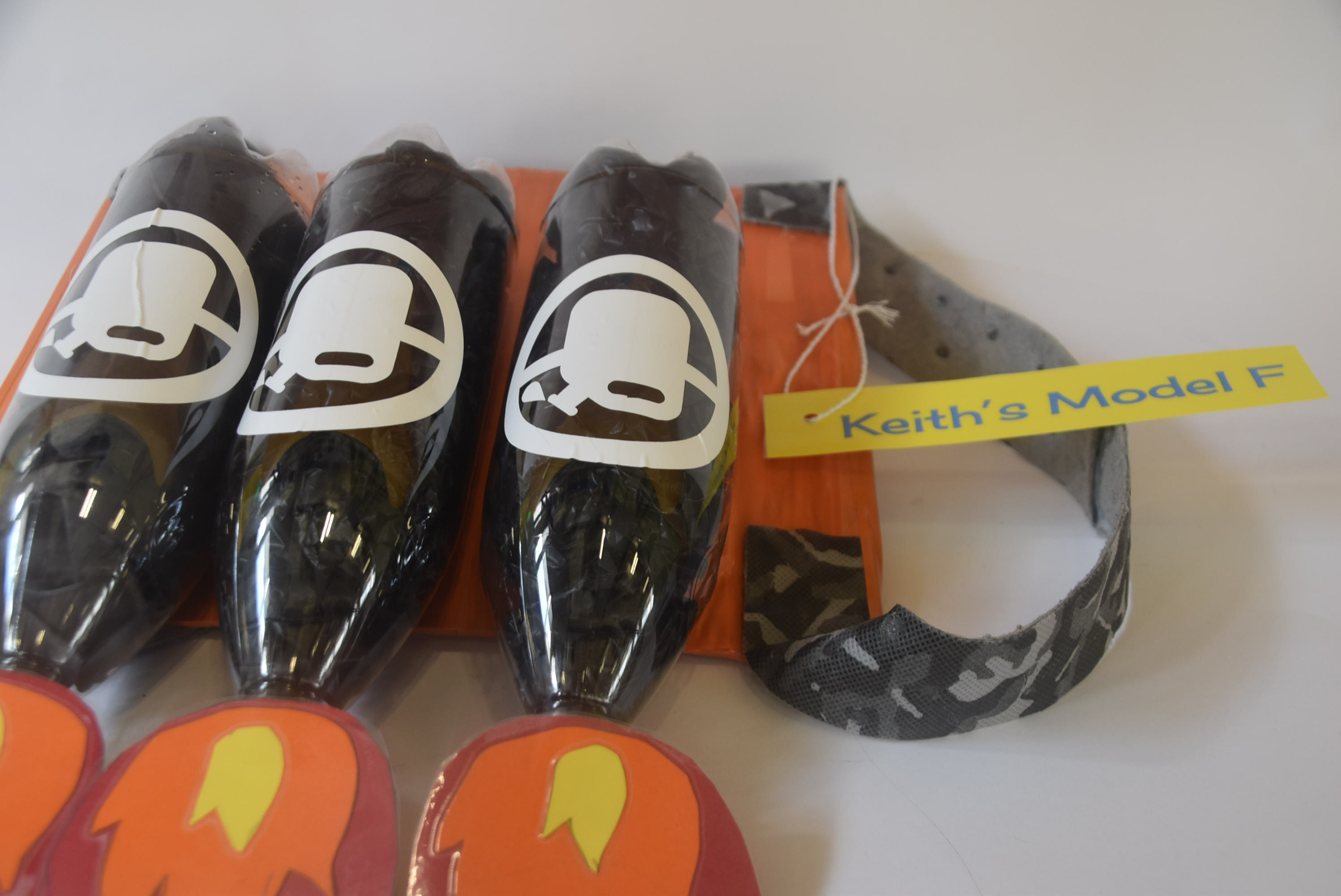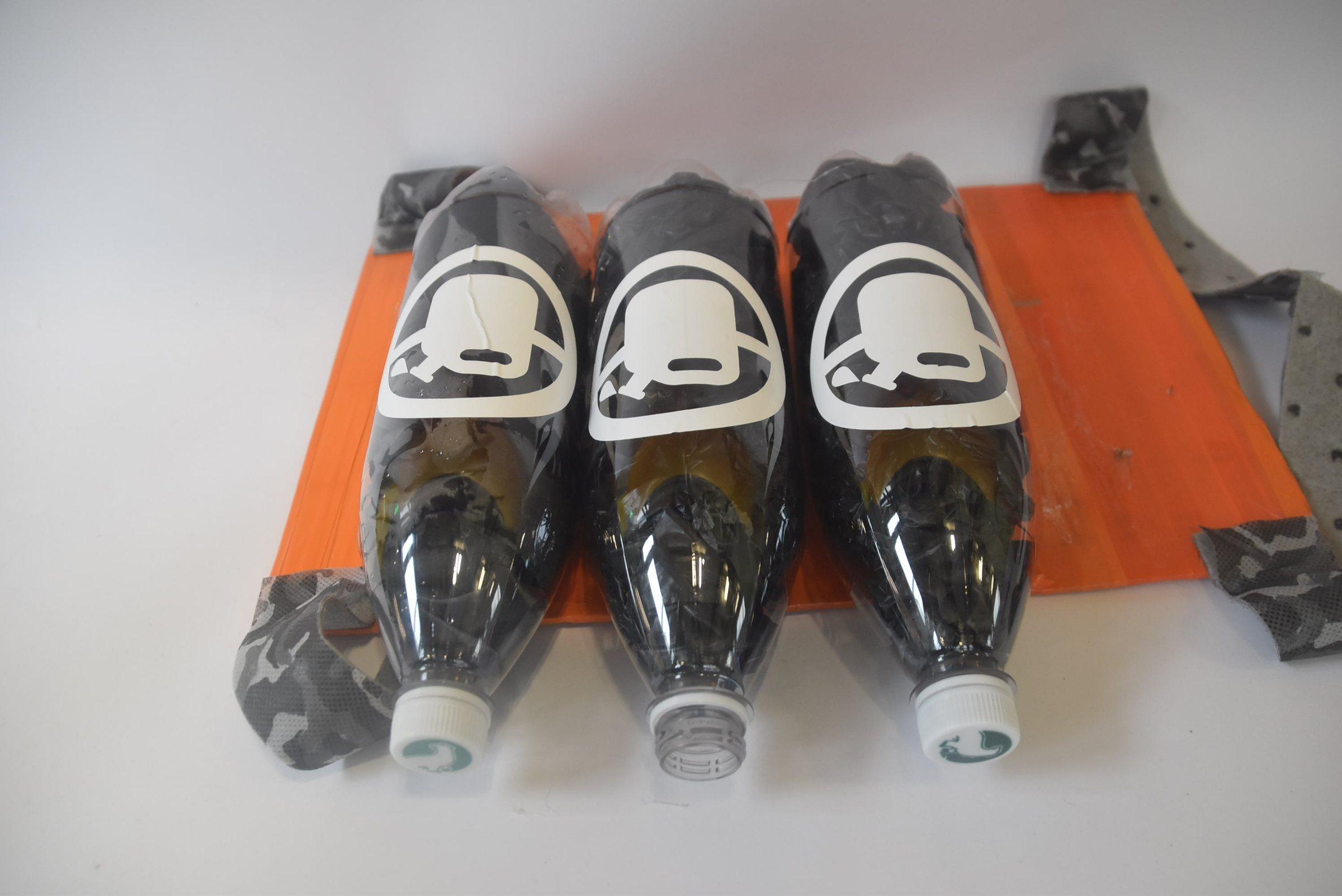 Day 4( today I made the straps and but trash bags inside of the bottles as oil